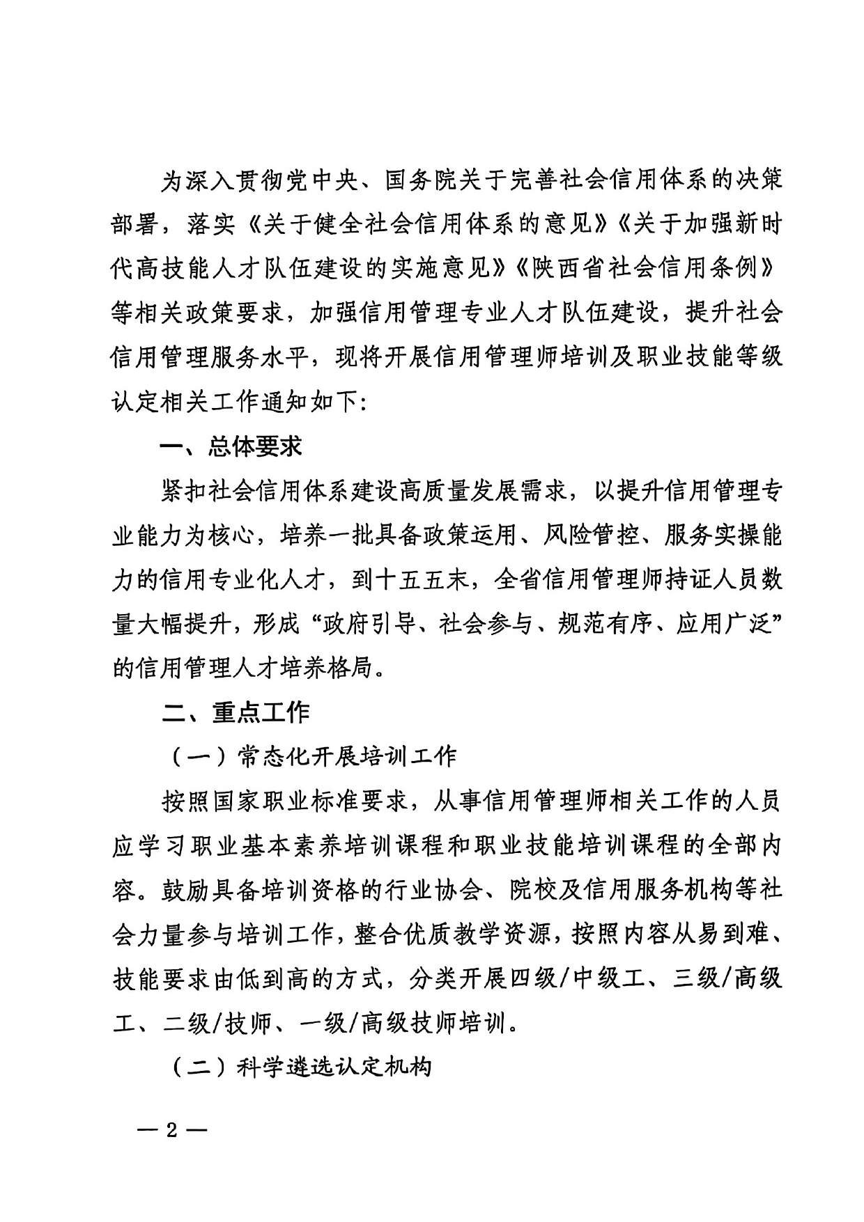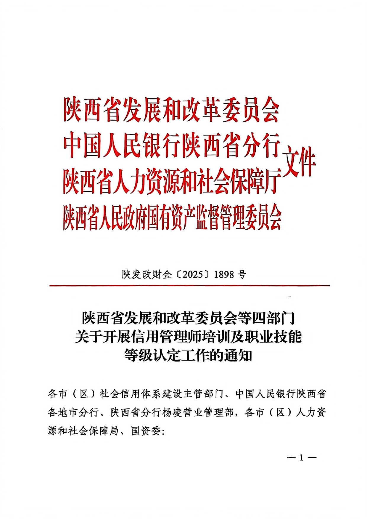 近日,陕西省发展和改革委员会、中国人民银行陕西省分行、陕西省人力资源和社会保障厅、陕西省人民政府国有资产监督管理委员会联合印发《关于开展信用管理师培训及职业技能等级认定工作的通知》(陕发改财金〔2025〕1898号),正式启动全省信用管理师的培训与职业技能等级认定工作。